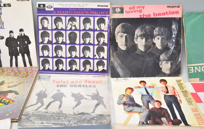 A good mixed group of The Beatles 45's RPM singles and and EP's to include All My Loving, A Hard Day's Night, Long Tall Sally, The Beatles No.1, The Beatles Million Sellers, Twist and Shout, Magical Mystery Tour, P.S I Love You and many more. 19 in total.