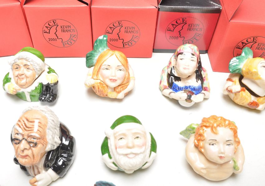 A group of twenty seven Kevin Francis ceramic face pots in the form of various mythical characters to include dragons, santa, leprechauns, mermaids, angels, fairy etc. With original boxes.