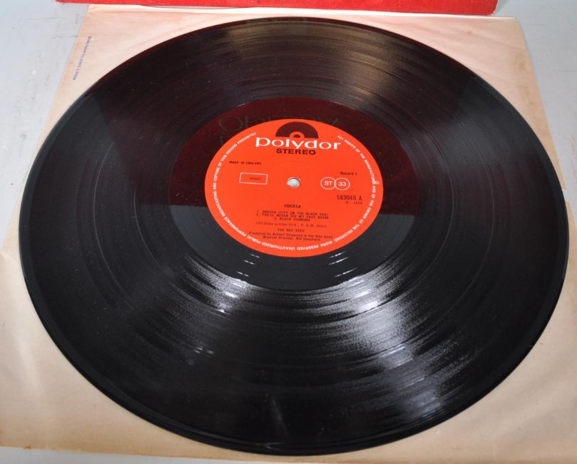 A vinyl long play LP record album by The Bee Gees – Odessa – Original Polydor 1st U.K. Press – 583049 Stereo – Vinyl condition VG. Red velvet sleeve condition G+.
