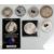 A group of seven silver American coins to include fine silver USA Eagles Veterans Day coin, 1 oz Liberty Bell coin, silver Eagle Dollar 1995 and a 2017 example, 1926 One Dollar coin, proof Olympic Dollar 1984 and a USA Trade Dollar. Total weight 216g.
