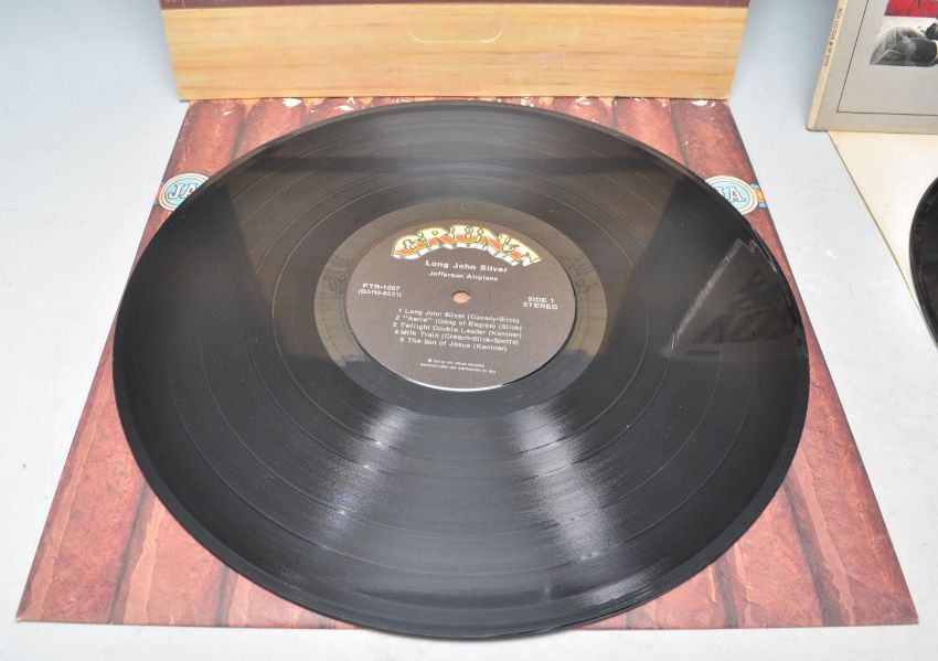 Two vinyl long play LP record albums by Jefferson Airplane to include – Volunteers – Original RCA Victor 1st UK Press – SF 8076 Stereo . Vinyl Condition VG. Sleeve Condition G.  Long John Silver – Original Grunt 1st U.S.A Press – FTR 1007 Stereo. Vinyl Condition VG. Sleeve Condition VG.