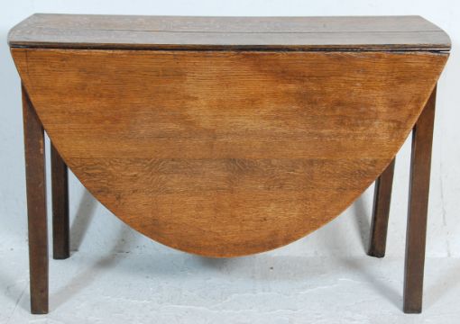 A 19th century George III solid mahogany gate leg /  drop leaf occasional dining table raised on block legs with an oval top raised on gate leg action. H69 W118 D48cm
