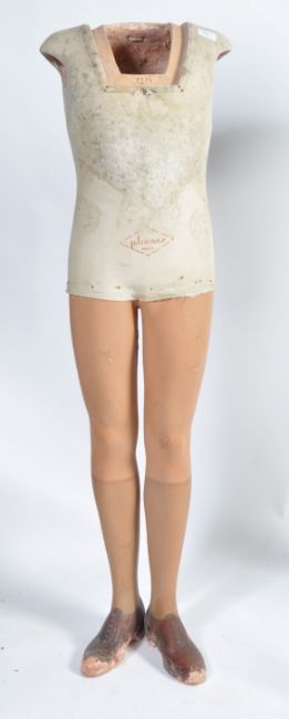 P Imans Paris - A rare early 20th Century French retro vintage advertising point of sale shop display plaster mannequin having a cloth covered torso with plaster legs and painted shoes.