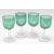 A matching set of four 19th Century Georgian Bristol Green drink glasses having green round funnels supported by brilliant faceted cut stems raised on circular bases. Measures 14cm tall by 6cm diameter.