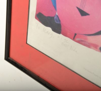 Nell Nile - A vintage 20th Century framed and glazed print entitled 'The Bass Player'. Limited edition 40/750. Signed in pencil by the artist. Measures 36cm tall by 47cm wide.