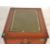 An antique style mahogany and leather office filing cabinet. Raised on a plinth base with twin drawers having filing rails set within. Finished with a green leather top above. Together with a small mahogany side table on castors. Measures 77 cm high  x  47 cm wide  x  62 cm deep.