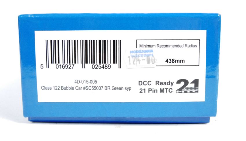 A Dapol 00 / OO Gauge model railway trainset DCC Ready locomotive 4D-015-005 Class 122 Bubble Car ~SC55007 BR Green Syp. Appears mint and unused in the original box.