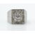 A French retro platinum and diamond ring. The ring set with a central round brilliant cut diamond with halo of diamonds and pave set mount with stylised shoulders and French alsatian mark to outside of shank. Total weight 7.9g / Size K