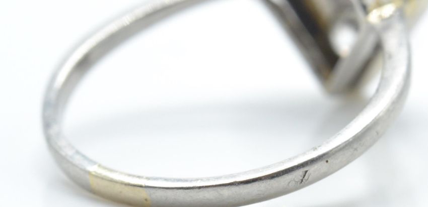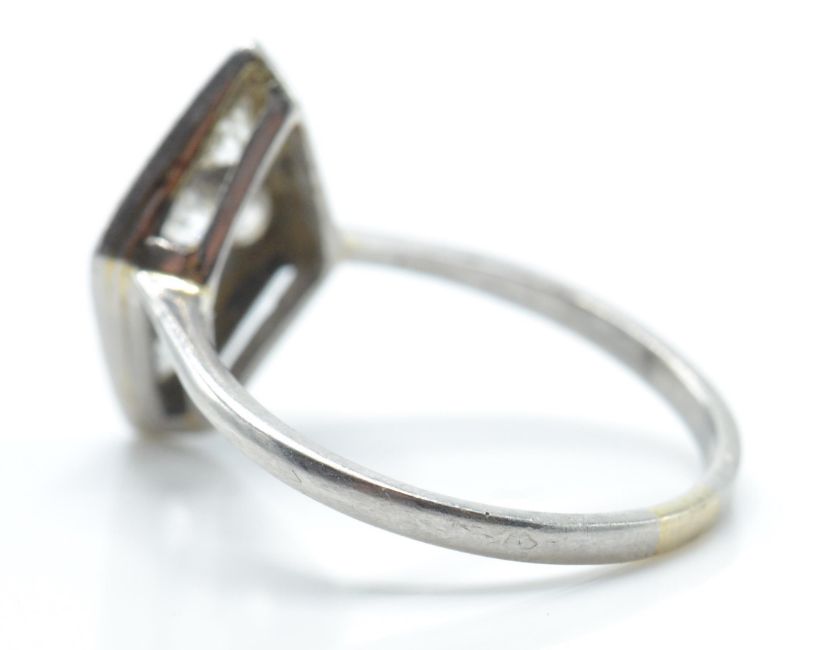 A French platinum, gold and diamond ring. The ring being set with 4 old cut diamonds in a millgrain setting having an openwork mount to a tapered plain shank. Alsatian mark to outside of shank. Weight 4.2g / Size R