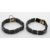 A pair of antique early 20th century mourning bracelets Each with black glass links set with 9ct gold spacers and push clasp uniting with safety chains. Total weight 34.37g / Length approx 15.5cms each