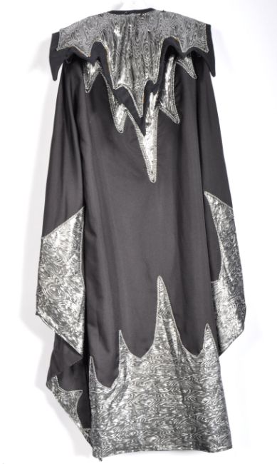 Fancy dress - A good 20th century pantomime baddie / theatre costume, likely from Aladdin. A very good quality drama outfit. Comprised of a black gown and silver collar and sleeves.