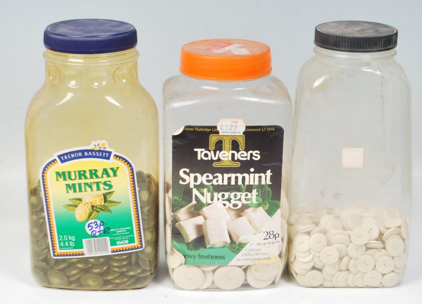 A collection of retro vintage mid 20th century buttons to include a group of two tone grey glossed plastic shank buttons and cream white plastic flat shirt buttons of varying sizes. Taken from a large private collection. Measures 1.5cm to 3cm in diameter.