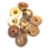A collection of retro vintage mid 20th century buttons to include a group of domed gold plastic shank buttons, a group of plastic shank buttons having red centres and gold scalloped rims, white metal square shaped shirt buttons having faux mother of pearl at the centre and small gold shank buttons in the form of regimental uniform buttons, having an anchor design atop. Along with several more designs. Taken from a large private collection. Measures approximately 1cm to 2.5cm.