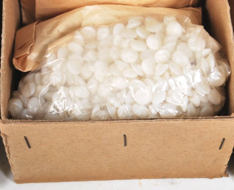 A collection of retro vintage mid 20th century buttons to include a group of plastic white two hole shirt buttons, a group of gold plastic shank buttons and a group of white plastic shank buttons.