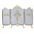 A good 19th century gilt metal and mesh worked triptych fire screen guard of rococo influence having scrolled top rail with shell pediment, birds and ribbon worked spray applied to centre with campana urn embellishments to the side panels, all raised on stunning gilt metal feet. Measures 80cm x 108cm