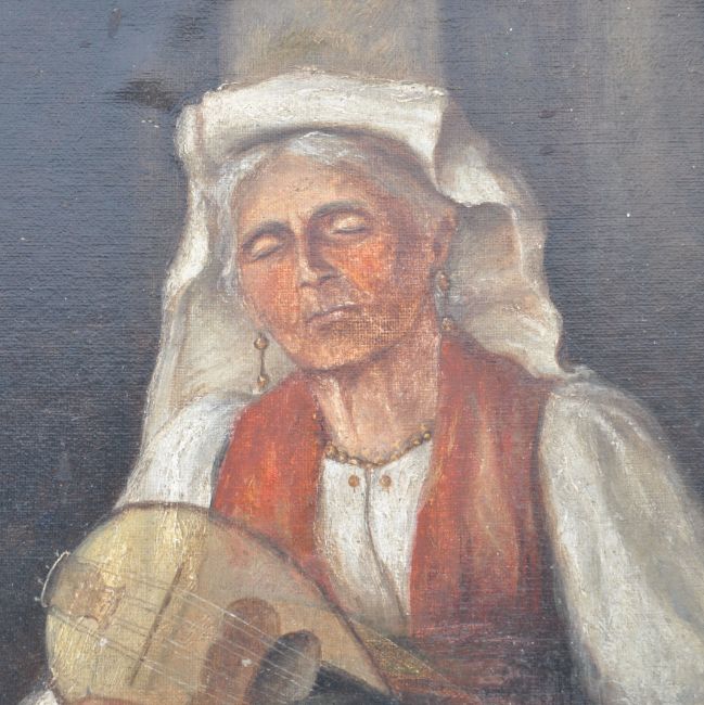 C. Evans - 1896 - Sleeping Mandolin Player - A 19th century oil on canvas painting depicting a sleeping gypsy / mandolin player. Signed to the corner ' C Evans '96 '. In a period gilt frame. Total size approx; 50cm x 40cm