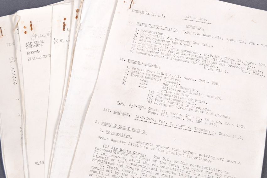 A collection of WWII Second World War related RAF Royal Air Force related ephemera and items. Includes; a photograph signed by Wing Commander Robert Stanford-Tuck (framed), along with a similar signed postcard, a rare group photograph of ' 21 Squadron ' - hand annotated to reverse with names of those present, a photograph of an RAF airman along with his smoking pipe, and a selection of period aircraft printed notes - including Forced Landings, Cross Country Flying and other such notes. Interesting assorted collection. All presumed related.
