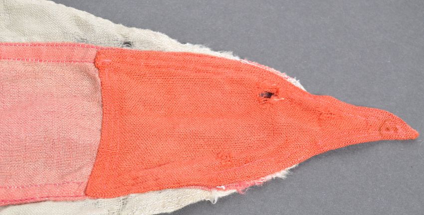 A WWI First World War related flag, believed to be a Royal Standard - featuring a crown to the centre, with red cross and white ground. The flag dated faintly to seam '1915'. Some wear, and some repairs present. By repute this flag was aboard one of the ' little ships ' that rescued stranded Allied troops from the beaches of Dunkirk in 1940, although no provenance is supplied. Measures approx; 74cm long.