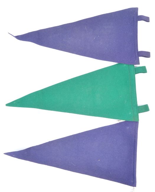 A collection of x3 vintage British Royal Navy related pennants / flags - the first for HMS Undine, the second for ' Royal Navy In Australia ' with a Kangaroo motif, and the third being an ' HMS King George V ' pennant in green. Single sided. Each approx; 46cm long.