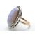 A 9ct rose gold opal and diamond ring. The ring set with  a central opal cabochon surrounded by rose cut diamonds having tapering shank. Opal measures 19mm x 11.8mm. Total weight 5g / Size L.5