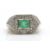 A retro emerald and diamond ring. the ring set with a central emerald surrounded by pave set diamonds in rose and brilliant cuts. Unmarked.  Weight 9.6g. Size M.5 - O.
