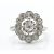 An 18ct white gold and diamond cluster ring. The ring set with a central round brilliant cut diamond in a raised prong setting surrounded by a halo of diamonds tapering shoulders. French eagle mark to outside of shank. Weight 3.4g / SIze N