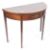A 19th century George III mahogany and marquetry inlaid demi lune card table. Raised on square tapering tall legs with ebonised inlays, half moon fitted frieze with marquetry ribbon details. Above, a fold over table top. Measures 72cm x 90cm x 45xm 90cm when open.