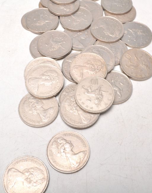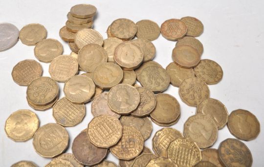 A collection of 20th Century coinage to include post 1947 half crowns and shillings, a selection of three pence coins and old ten pence coins.