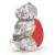 A silver plated pincushion in the form of a teddy bear with a red velvet cushion to the rear. Weighs 17g. Measures 3cm.