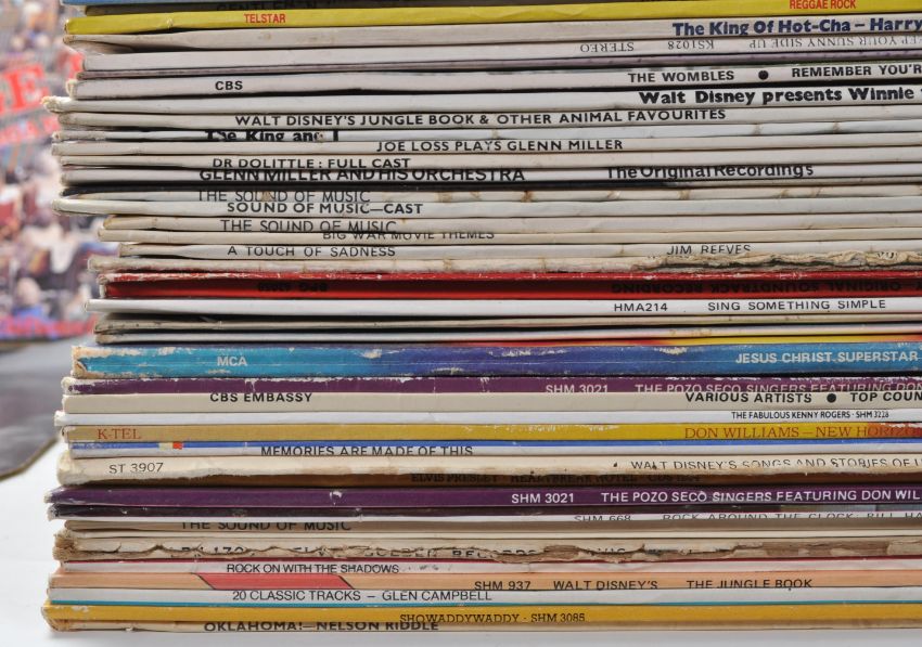 A collection of vintage 12" LP records to include a good selection of film and musical scores including the Sound of Music, Jesus Christ Superstar, Oklahoma, Mother Goose, as well as other mixed records including Tony Savage and Dominic pay the Organ (signed), Sheila White (signed), Remember You're a Womble etc.