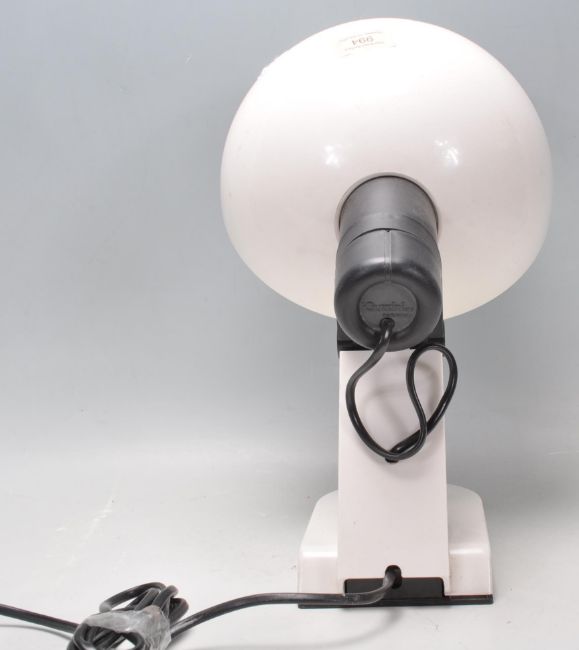 Harvey IGuzzini - I Guzzini Spa - A 1960's Italian retro vintage table lamp / light having a large white plastic domed shade, black plastic joint and a white plastic shaped arm and base with red switch. Markings to the back. Measures; 35cm tall as in picture.