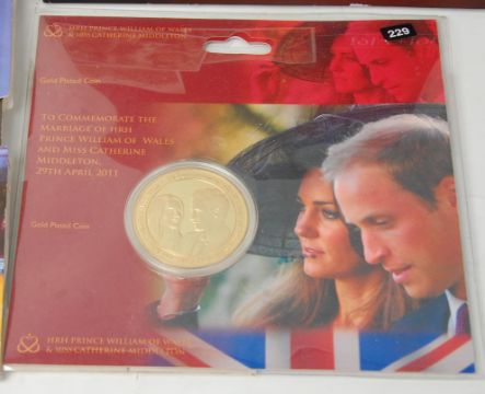 A mixed group of presentation / commemorative coins to include a Golden Wedding Crown 1997 Five Pound coin, gold plated William & Kate Wedding coin, A War To End All Wars coin set having one 2018 proof coin within, 1901 Queen Victoria reproduction gold plated coins and a fine silver Twenty-five Dollar 1994 Jamaican coin.