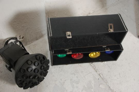 DJ equipment - A mixed group of disco / club / DJ lights to include two CX-2 Martin automated profile spotlights and another by iRock 4C, LED Flood Light, Pro Light model TS-2004 and a Stark cased coloured bulbs. Part of a collection of ex DJ equipment. All sold as untested.