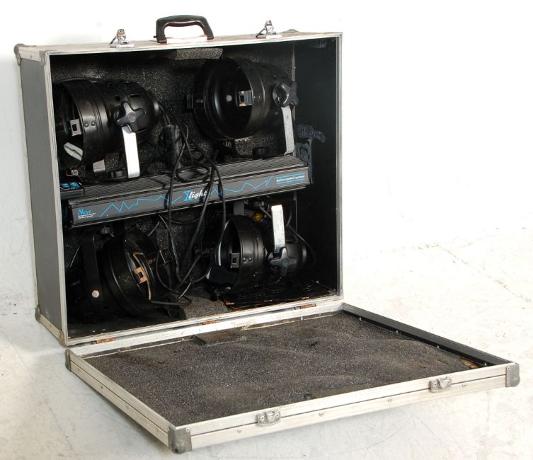 DJ Equipment - A cased Xlight Active Control System having four adjustable lights. Marked 'Next Microprocessor Controlled Zero Crossing System'. Within a flight case.