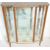 A retro mid 20th Century 1950's formica breakfront china display cabinet vitrine. Raised on tapering stub legs having glass shelves set within.
