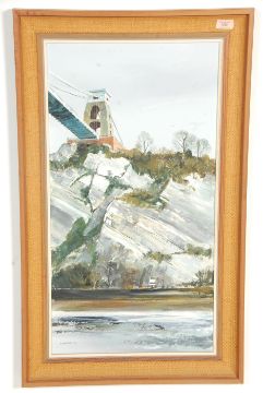 Michael D Barnfather (British 1934-) An Original oil on canvas painting of Clifton Suspension Bridge set within the original frame being signed and dated. Measures 90x54cm.