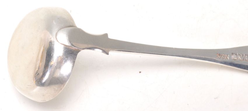 A 19th Century Victorian Scottish silver hallmarked ladle / toddy spoon having a kings pattern handle and monogram to verso. Hallmarked for Edinburgh date letter R 1848, makers mark for Mackay & Chisholm. Weighs 39g. Measures 14cm long.