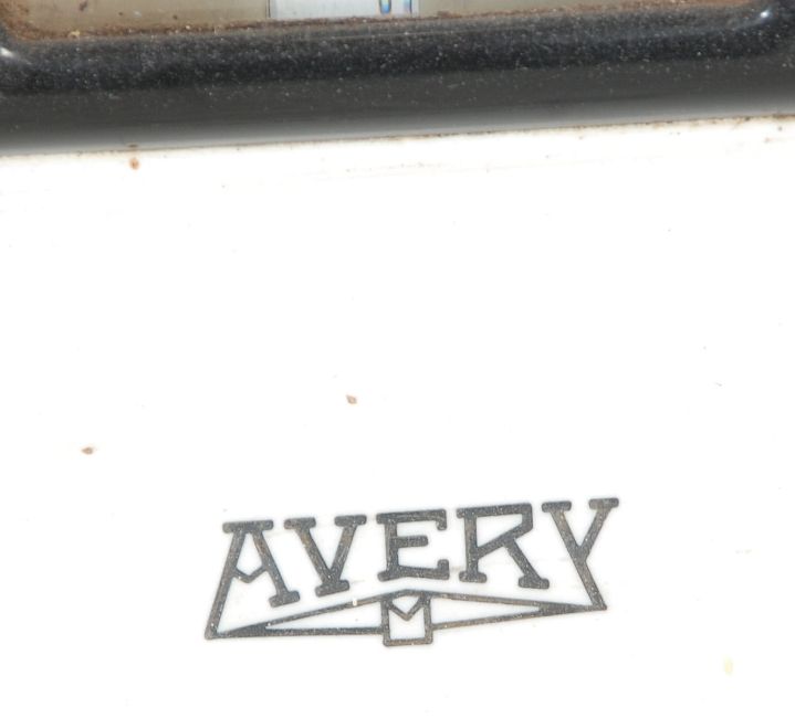 A large set of vintage retro Avery ' The Fort ' shop / confectioners scales, each sides having glass window display panels, complete with original bowl and white enamelled.60cm high.