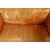 A vintage retro style two seater sofa settee having a wooden frame with tan brown leather upholstery back seat and backrest cushions. Raised on leather covered legs with shaped arms to side with arm rest cushions. Measures 82x178x84cm.
