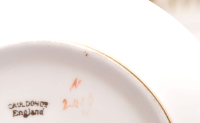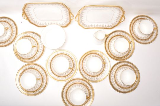 Cauldon - A Fine Bone China English tea service by Cauldon having Greek key borders with gilt decoration. The service comprising eight cups, saucers, side plates with sapers, sugar bowl, milk jug and two sandwich plates.