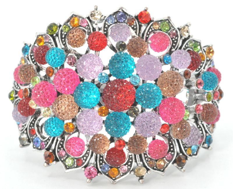 A contemporary silver and semi precious stone art nouveau style cuff bangle with a hinged clasp. Measures 8cm in diameter. Weight 65 grams.