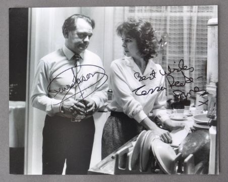 Only Fools & Horses - David Jason and Tessa Peake Jones - an impressive dual autographed 8x10" black and white photograph from the episode ' Dates '. Neatly signed by both in black ink over their respective characters. Supplied by an AFTAL registered dealer. Rare.