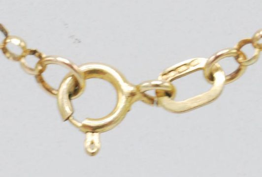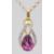 A lovely gold on silver mounted faceted cut pink stone droplet flanked by white accent stones. The pendant on a 9ct gold necklace chain. Pendant stamped 925 with hallmarks to the chain. Gross weight weight 4.02g. Measures 19 inches long.