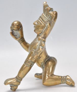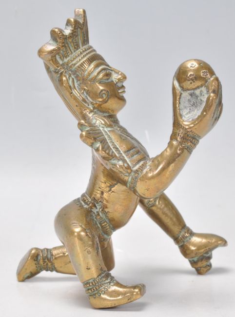 A good 19th Century gilt bronze figurine of the Deity Balakrishna in the crawling position hold a butter ball with engraved decoration throughout. Measures 13cm tall by 9cm wide.