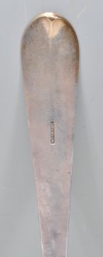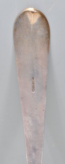 An American silver ladle having a monogram handle and stamped to verso for Wishart. Makers mark for Charles Wishart. Weighs 160g.