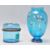 Two vintage blue glass hand enamelled ceramics in the manner of Moser to include a cylindrical trinket box decorated with a bird and florals together with a bulbous form vase enamelled with florals and insects with further gilt detailing. Measures 14 cm tall.