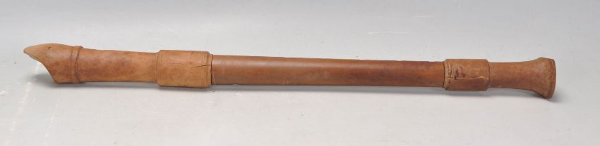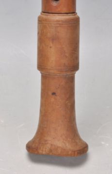 A vintage early to mid 20th Century fruitwood three section alto recorder musical instrument. Measures 47 cm long.