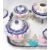 A vintage 20th Century Japanese ceramic dressing table set having blue borders with pink floral decoration and gilt detailing.