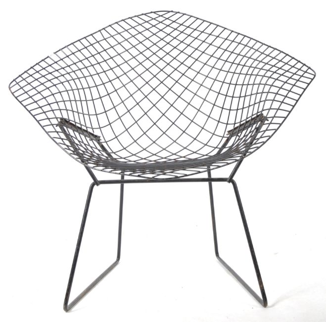 Harry Bertoia - Diamond Chair - A believed original retro vintage Diamond Chair of typical form, possibly manufactured by Knoll. The chair having well constructed frame with sweeping wirework seat and the base united to the frame with hex-bolts. Measures 79cm x 84cmx 80cm