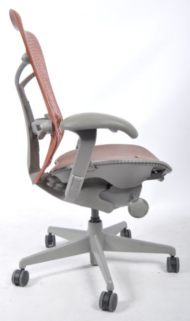 Studio 7.5 - Herman Miller - Mirra 2 - A late 20th century retro swivel desk chair with adjustable positioning for posture. The chair raised on a five point star base and castors. Mould marks for Herman Miller to the back. Measures; 102cm x 73cm.